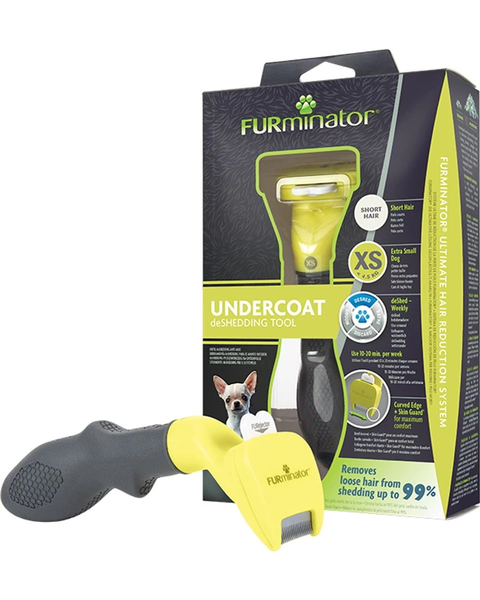 Cette brosse Undercoat deShedding de Furminator est destinée aux très petits chiens à poils courts.