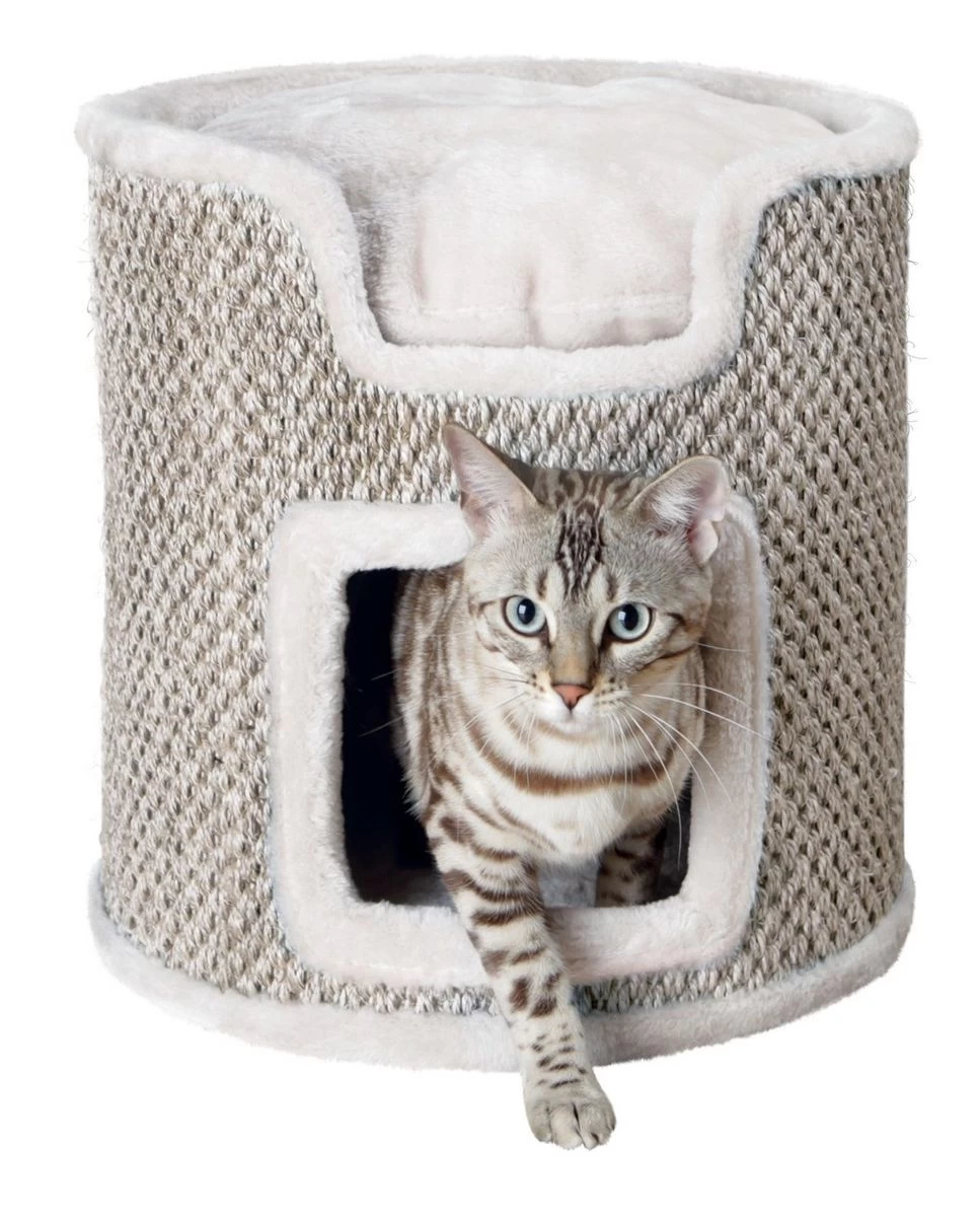 Votre petit félin pourra se prélasser pendant de longs moments dans sa cachette pour chat cat tower de trixie en sisal et peluche douce !