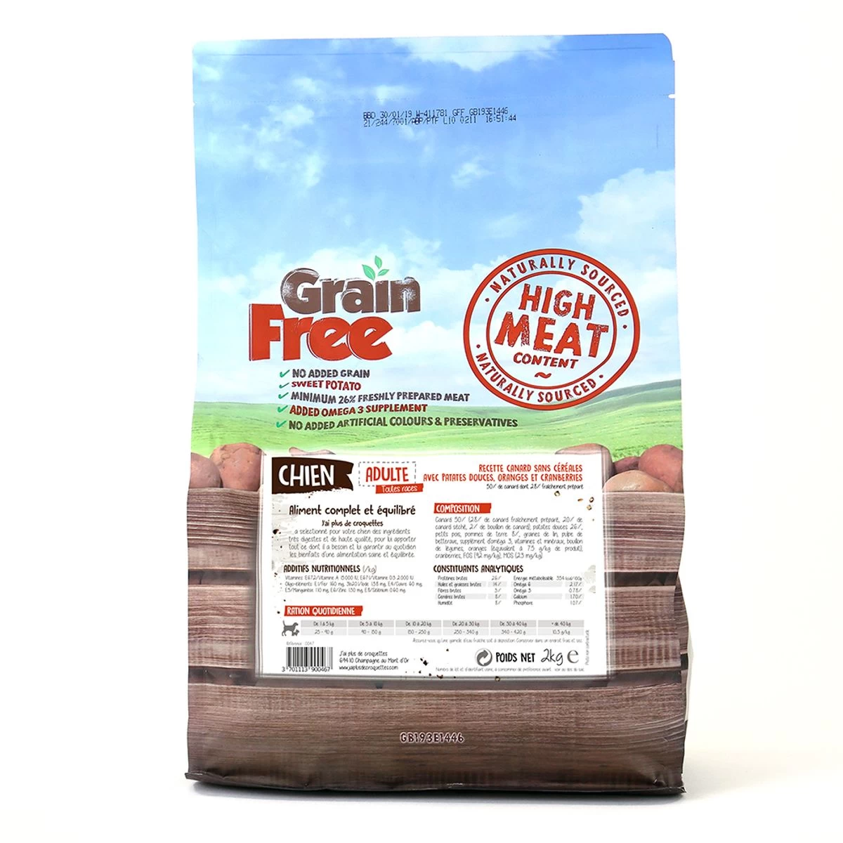 Ces croquettes sans céréales sauront apporter les nutriments nécessaires à votre chien adulte. En effet la patate douce est une excellente alternative pour les chiens ayant une intolérance ou une sensibilité aux céréales. Le canard est riche en protéines et acides aminés. Ces croquettes sont sans colorants artificiels ni conservateurs.