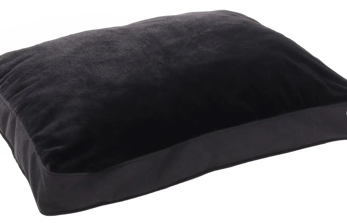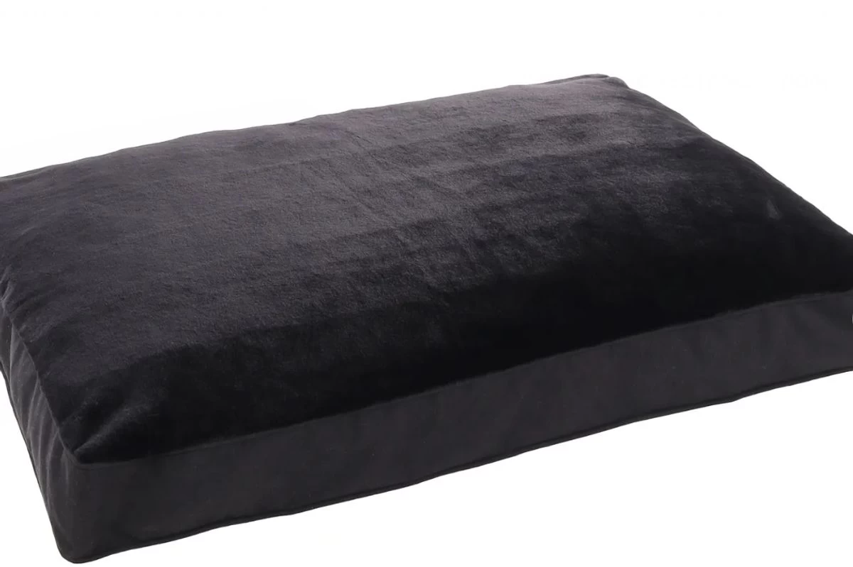 Le panier rectangle noir Esmo pour chien est fabriqué en caoutchouc mousse avec des peluches rembourrages pour les bords qui sont en fibres de polyester, le rendant plus confortable.Â