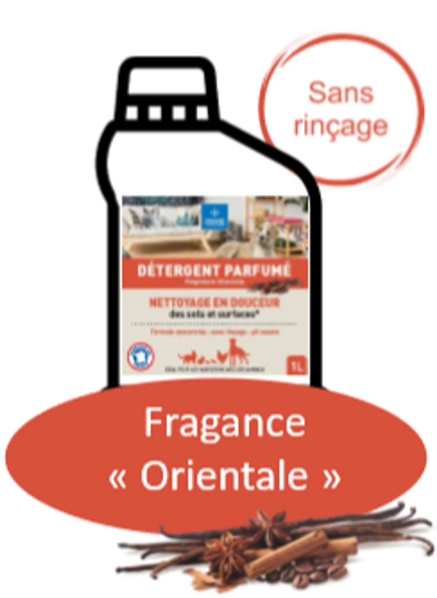 – Masque les odeurs et laisse une odeur fraîche et agréable « Zestes d’agrumes » et « orientale »