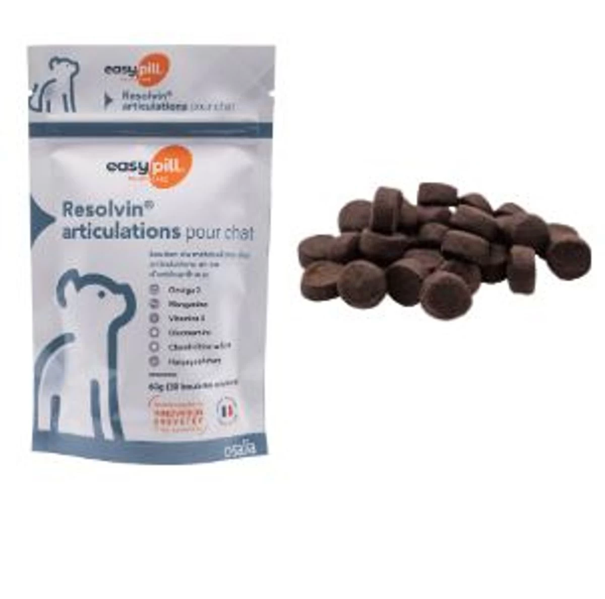 Easypill Resolvin Articulations est un complément alimentaire pour chat qui permet de soutenir le métabolisme des articulations en cas d’ostéoarthrose.