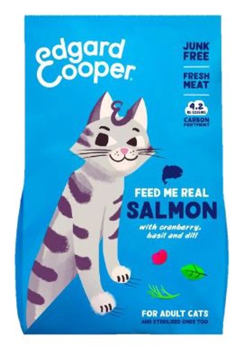 Les croquettes pour chat adulte Edgar Cooper est une alimentation équilibrée au saumon.Â