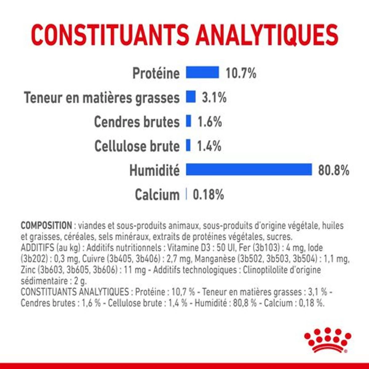 – Constituants analytiques : Protéine: 10.7% – Teneur en matières grasses: 3.1% – Cendres brutes: 1.6% – Cellulose brute: 1.4%