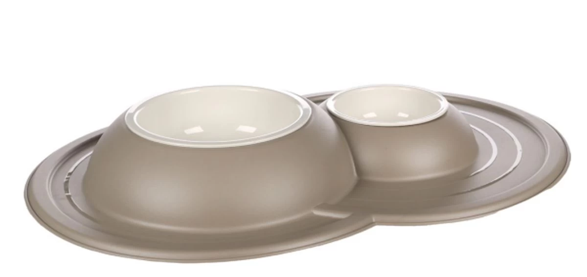 Ces deux gamelles amovibles sont parfaites puisqu’elles regroupent la nourriture et l’eau sur un seul support.