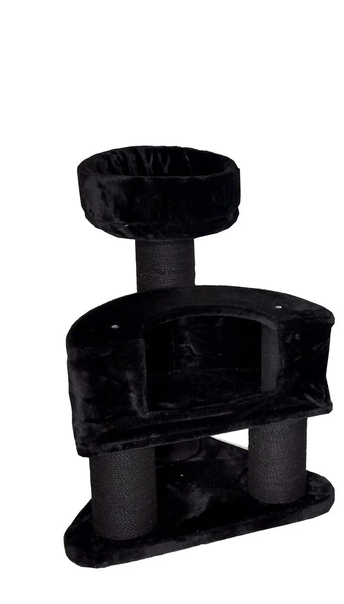 – cet arbre à chat très robuste est composé de poteaux en sisal solide, de cachettes et d’une base recouverte de peluche de grande qualité.