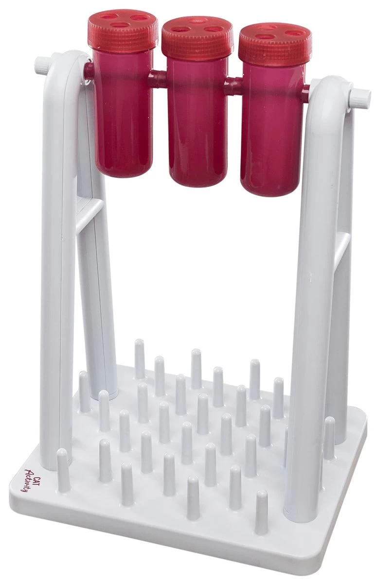 Le turn Around est un jouet éducatif pour chat qui cumule stimulation mentale et exercice physique. L’objectif est qu’il découvre les friandises que vous aurez préalablement disposés dans un/plusieurs cones ou au travers des picons.