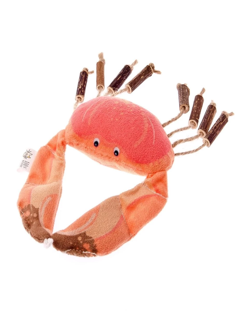 Le jouet « Crabe » de la gamme Pesci est un jouet en tissu rembourré avec 100% de Matatabi à combiner avec la tige télescopique de la canne à pêche « Pescamicio » de Ferribiella.