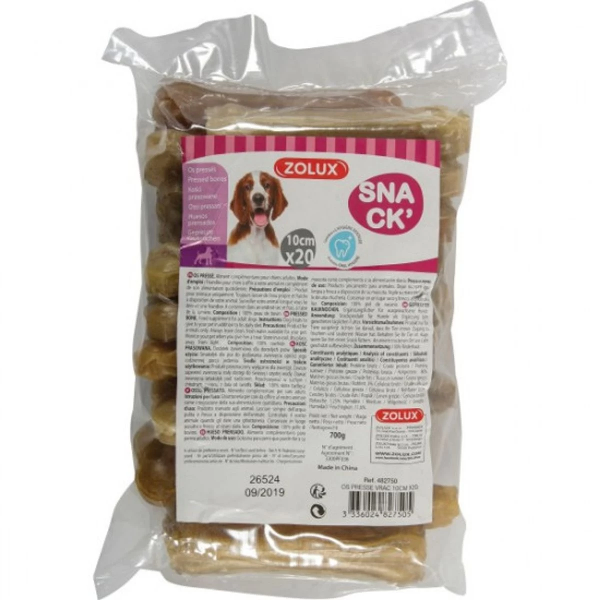 Les os pressés de Zolux sont des friandises composées de 100% de peau de bovin.