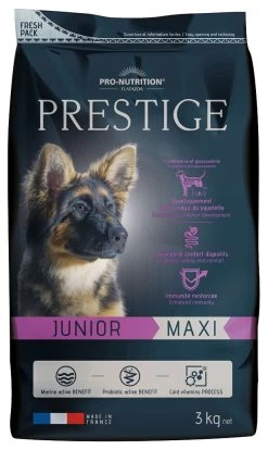 Flatazor a amélioré la formule des croquettes Prestige Junior Maxi ! Elles offriront à votre chiot de grande race une alimentation équilibrée et de très grande qualité qui répond à ses besoins physiologiques. Découvrez cette recette appétente et hautement digestible pour assurer bien-être et plaisir à votre petit compagnon. Ces croquettes sont spécialement conçues pour les chiots de grandes et très grandes races (chiens pesant plus de 30 kg à l’âge adulte). Proposer à son chien des croquettes adaptées à ses besoins est fondamental pour lui assurer force et vitalité !