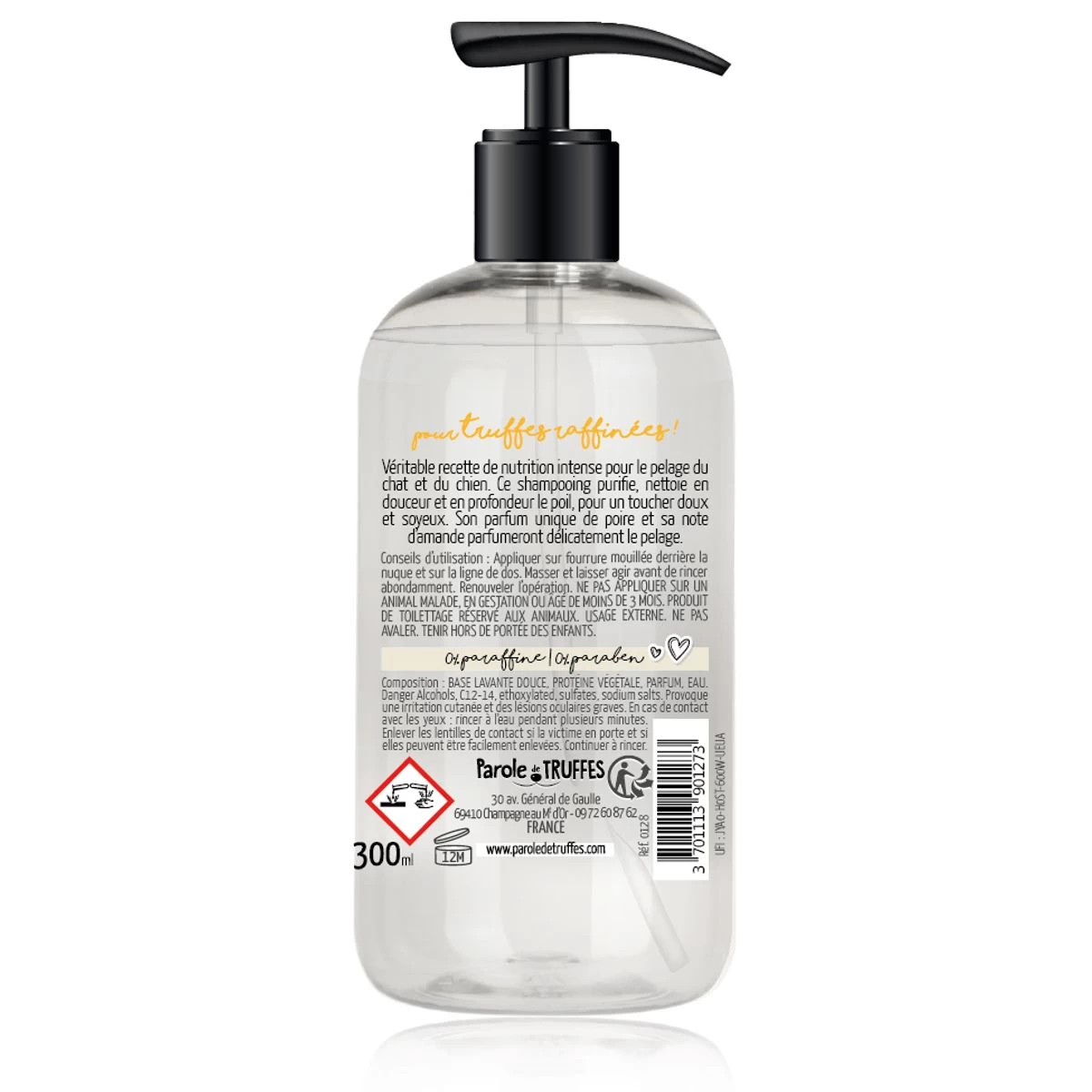 Succombez à ses senteurs fruitées de poire et ses notes d’amande, qui laisseront un parfum délicat sur le pelage de votre animal.