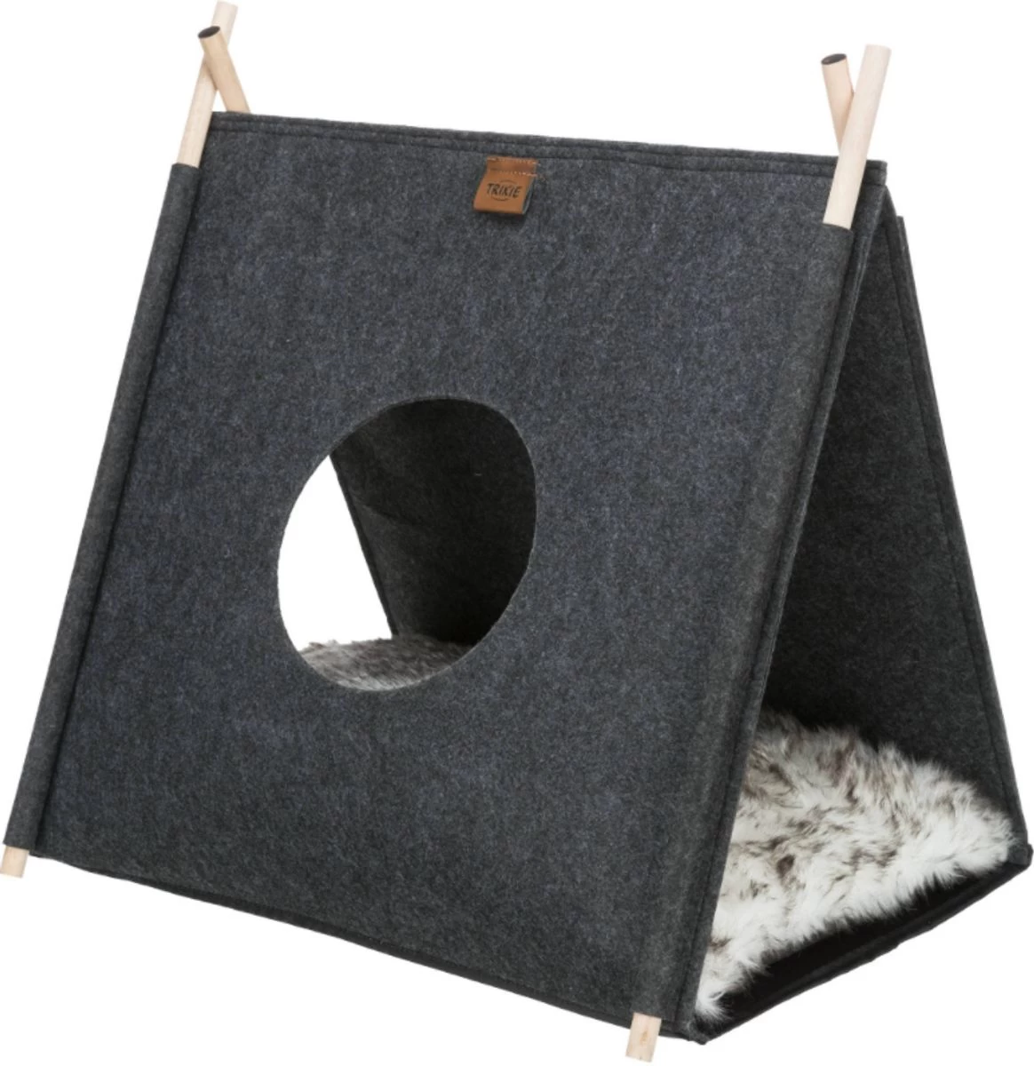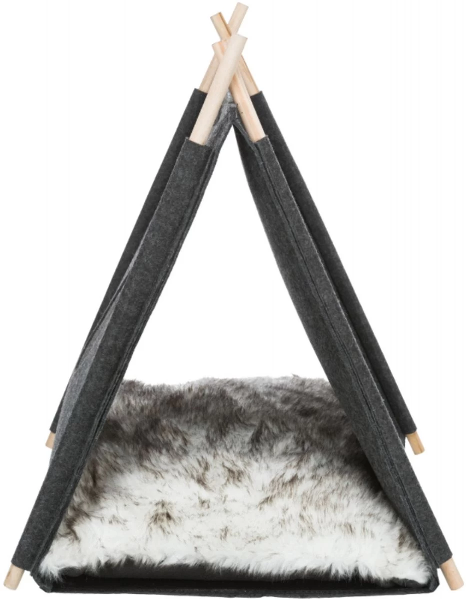 Le tipi « Elfie » de Trixie est fabriqué en polyester effet feutre. Son coussin est rembourré et réversible avec une housse en peluche à poils longs pour un joli couchage bien douillet.