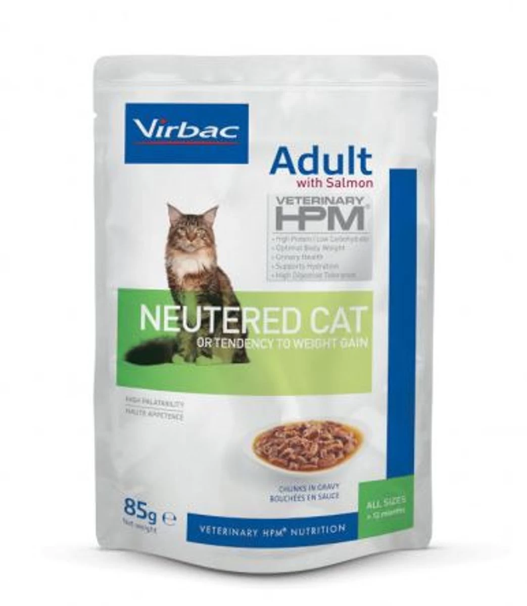 Les bouchées en sauce Vet HPM Wet Cat Adult Neutered sont un aliment complet pour chat adulte stérilisé de plus de 12 mois.