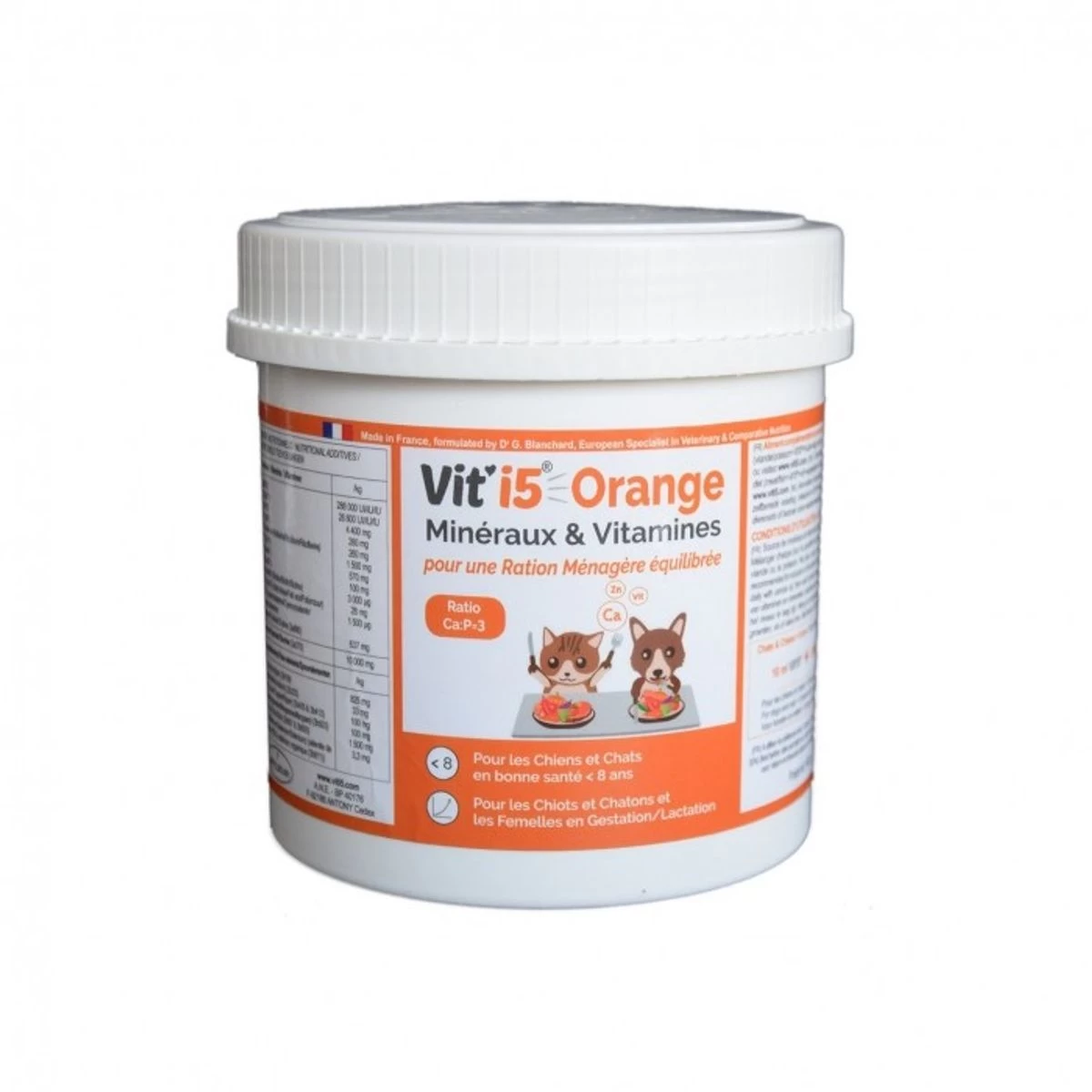 Sans sel ni sucre, ni protéine animale, ni colorant, ni conservateur, ni arôme, Vit’i5 Orange permet d’équilibrer la ration quotidienne de votre animal , même en cas de diabète ou d’intolérance alimentaire.